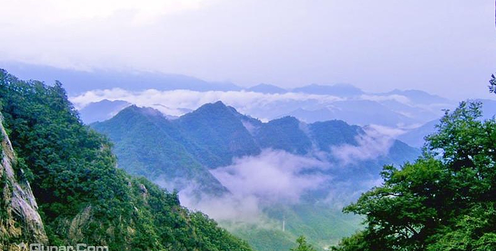 白云山位于河南省洛阳市嵩县西南部,地跨长江、黄河、淮河三大流域,总面积168平方公里,是世界地质公园、国家5A级旅游景区、中国十佳休闲胜地。景区平均海拔1800米,森林覆盖率高达98.5%,有动物275种,植物2000余种,被专家誉为“自然博物馆”。这里白云悠悠、林海莽莽、山俊石奇、飞瀑流泉,目前已开发有九龙瀑布、玉皇顶、白云峰、原始森林、小黄山五大观光区和白云湖、森林氧吧、高山牡丹园、留候祠、芦花谷等五大休闲区。玉皇顶海拔2216米,有“中原极顶”、“绿色心脏”之誉;九龙大峡谷全长3000米,造就众多潭瀑景观;九龙瀑布落差123米,气势恢宏,“九龙瀑布嬉彩虹”中外闻名;8万平方米的华山松,空气中负氧离子含量高达每立方厘米7.3万个。中央政治局常委李长春视察白云山,亲笔题词“中原名山”;已故著名书法家启功先生惊叹于白云山之美、之奇、之秀,欣然题笔“人间仙境白云山”;原新华社社长穆青先生为白云山挥毫写下“白云天下秀”;原河南省委书记徐光春题词“白云山秀甲天下”。