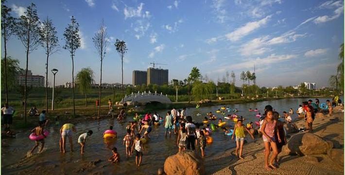 沙澧河风景区位于河南省中南部,沿河横穿漯河市区,岸线长36公里,面积669公顷,是以都市休闲文化旅游为主题特色的旅游景区和国家体育公园。景区充分发挥两河穿城而过的自然资源优势,围绕“水”字做文章,重点开发生态观光、水上运动、休闲娱乐、体育健身等旅游产品,形成了独具滨河特色的绿色生态长廊、历史文化长廊、休闲娱乐长廊和体育健身长廊,是中原地区独具魅力的滨水旅游目的地。