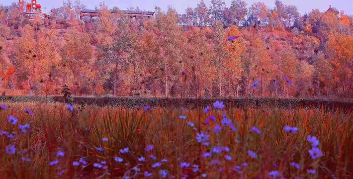 龙山公园位于314国道与218国道交汇处以东,颇有点龙昂首的意味,龙山山体与314国道高度落差为39米,与城市中心高度民主落差近百米,站在山顶即可纵览梨城全貌。那绵延横亘的绮丽山势,那依山耸秀,叠翠横云的美景让人赞叹不已。以龙山主峰为龙头的整个东山绿化带林木幽深,奇巧柔美,不仅形成了一道风韵卓绝、气韵无穷的自然风光,而且还孕育了极其丰富的人文精神。龙山公园于2001年2月开始建设,规划面积167公顷。它是库尔勒市开展异地绿化活动以来,17.2公顷,发展到现在的106.7公顷,从认养到全社会共同参与建设。创造了在极度困难地区植树造林成功的典范。龙山公园分龙山景区