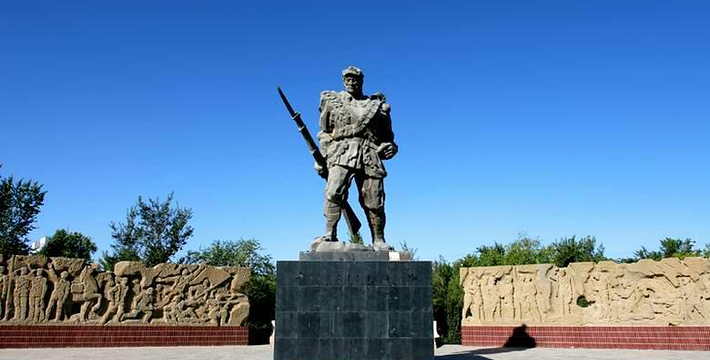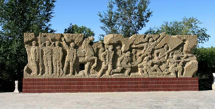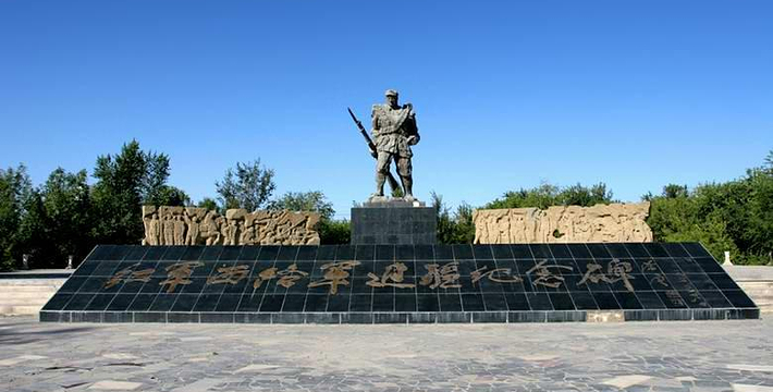 红军西路军进疆纪念园,是哈密著名的红色旅游点。位于哈密市建国北路铁路立交桥以北红星西路交叉口处。纪念园铜像主碑凝重,大型石雕造型生动,还有气势磅礴的题字碑,占地 15亩,采用仿古园林建筑格局,红墙绿瓦,牌楼大门,园内亭台楼阁,曲径回廊,绿树环绕,松柏苍翠。走进纪念园大门,是一组建筑群,有工作间、接待室、纪念馆等。走入正门,正中是西路军纪念馆。纪念馆门外左侧是王恩茂等老领导与李先念夫人林佳媚携子女所植松树,右侧是自治区党政军及兵团领导与陈云夫人于若木携子女所植松树。馆内正中央是陈云、李先念紫铜像,背景是星星峡山谷油画。馆内四壁展出红军西路军征战河西,会合星星峡,返回延安的大量珍贵历史图片和部分实物。纪念园的“红军西路军进疆纪念碑”是一尊高6.2米、重5吨的铜像。铜像造型为一红军战士头戴八角帽,身背大刀,右手握着钢枪,目光炯炯,大义凛然。铜像基座高3米,宽4米,用晚霞红大理石饰面。基座正面铭刻着汉文碑文,背面为维吾尔文碑文。记述了西路军战斗历史及英雄业绩,颂扬了西路军坚持革命的英雄气概和为党为人民的献身精神。主碑前方是一块12米长、1.5米高、倾斜面2米,用黑色大理石饰面的题字碑,上面是陈云亲笔题写的“红军西路军进疆纪念碑”碑名。铜像、主碑之后,两侧各有一块12米长、3米高的石雕。四组浮雕相对独立,有机融为一体,构成了一幅西路军英勇悲壮的历史画卷,包含着整个西路军的战斗足迹,是西路军艰苦卓绝的象征。现纪念园已成为新疆爱国主义教育基地。