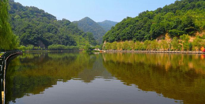 金鸡河风景区位于重渡沟景区西南部,景区全长3.8公里,景区入口距河水发源地相对高差358米。金鸡河是由喷涌而出的剑插泉、象吐泉、铸链泉、天井泉等汇集而成的一条常年性的河流。因西汉末年刘秀遭王莽追杀到此金鸡引路而名。以水为斧凿融会大自然的神工天力,造就了以水为主旋律的金鸡河景区,景区内有5米以上的瀑布30余条,30米以上的瀑布5条,长瀑布100余米,宽瀑布8米以上,是一个庞大的瀑布群。以抑恶扬善为道德基调,文化内涵深沉,传奇特色明显,趣味性强的民间传说恰到好处地点缀其中,从而构成瀑布成群潭成串,林密石怪传说奇的梦幻景观。其中千年菩提、龙曳磨、小桥流水人家、灵潭、飞虹瀑布、蟾蜍邀主、泄愤崖瀑布、虬爪潭、锁蛟崖、银沙缠绣球、双叠瀑布、鳄鱼滴泪、九天擂鼓、双龟弄涛,听涛岭、金鸡引路、刘秀靠背、歇三歇、金鸡谷瀑布、溅珠潭、剑插泉、象牙坝等景点,尤为神奇壮观,自然风貌与民间传说交相成景,既可饱览秀丽风光,又可目睹历史文化。