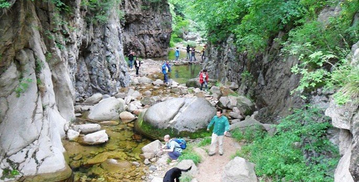 十八垛景区位于鲁山县与汝阳县交界处,距平顶山市区100公里,属伏牛山脉的外方山,面积约60平方公里,海拔在1200米至1600米之间,处于暖温带与亚热带过渡区,气候类型多样化,原生状态的植被保存完好,且呈垂直分布。十八垛属山岳风光型景区,以峡谷和原始森林闻名。在这里高山峡谷与天潭地井相得益彰。在十八垛景区的一侧,桃林河流经3公里长的峡谷地带,两岸为悬崖峭壁,高峰竞秀,谷内溪水在碧石之上淙淙流淌,鱼蟹在水中皆若空游。溪水下泻形成一潭,日黑龙潭,黑龙潭深不可测,面积约600平方米,令人惊叹。白龙幢飞瀑直下,落差80多米,贯青峰、撞白石,银珠飞溅,如玉龙飞舞。在原始森林区,游者沿山脊穿行,立高山之颠,可南眺石人、西观太谷石、东望峰峦叠障、北有群山环绕,满目诸峰竞秀,满眼山涛林浪,身在其中,原始森林以古老与生机并驻,古木参天,花草盖地,杜鹃烂漫有致,原生林木千姿百态,华山松、银粉松、栎木、山榆,树上长树,古藤盘绕,令人目不暇接。 十八垛象形山石众多,小景点随处可见:仙人指路、石人戏石猴、老猴背小猴、骆驼峰、乌纱帽、鬼门关、将军把门、八抬轿、天门城垛、老鸭石、鸡冠石、鸡心石;此外,仙人垛、獐子垛等惟妙惟肖,令人难辩真假。