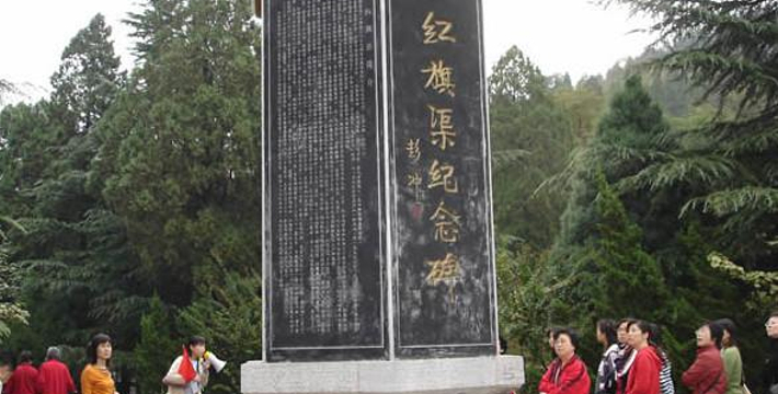 1960年林县人民在太行山悬崖峭壁上盘山开凿,修建了总长近2000公里的红旗渠,从山西省平顺县侯壁断下绝引漳河水入林县。沿漳河南岸绕悬崖,越峡谷,逢山开洞,遇河架桥,开凿长达70公里的总干渠,渠高4.3米,宽8米,引水量每秒18.3立方米。从分水岭向下,分凿三条干渠,全长41.5公里,著名工程有桃园渡桥,桥长100米,高24米,宽6米,其上可行汽车。十干渠与英雄渠汇流处称"红英汇流",渠水奔腾,飞瀑喷雪,好似银河倾泻。第二干渠全长48公里,东南流入安阳县。第三干渠东北流经4公里长的曙光洞而入东岗乡。整个工程劈开山头1250座,凿通隧洞211个,架设渡槽152条,挖砌土石1640万立方米,用工4000多万个。红旗渠的建成,全县形成了引、蓄、提相结合的水利网,建水库、池塘400多个,建中小型水电站80多个,灌溉面积40万亩,解决了人畜饮水的困难,并提供了工业用水。