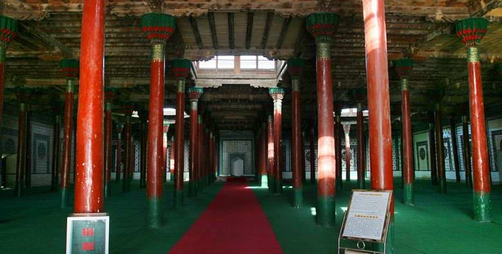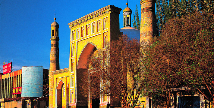 艾提尕尔清真寺坐落于新疆维吾尔自治区喀什市的艾提尕尔广场西侧,始建于1442年,南北长140米,东西宽120米,占地总面积为1.68万平方米,分为“正殿”、“外殿”、“教经堂”、“院落”、“拱拜孜”、“宣礼塔”、“大门”等七部分。 在国内外宗教界均具有一定影响,为自治区重点文物保护单位。喀什噶尔古城,国家AAAAA级旅游景区,占地面积20平方公里。喀什噶尔古城位于新疆维吾尔自治区喀什市中心,南至人民路,北至色满路、亚瓦格路,西至云木拉克夏路,东至吐曼河观光带。喀什噶尔古城历史悠久、文化丰厚、风情独特,素有“不到喀什游不算到新疆,不到古城游不算到喀什”的美誉。