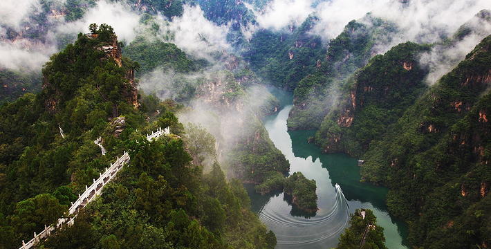 峰林峡景区是云台山西区的重要园区,峰林峡园区有“云台天池”之美誉,是“焦作山水”的精华所在。景区位于河南省焦作市修武县西北部,距离修武县城48公里,距离焦作市区25公里,景区面积52平方公里,有大小景点81处,是一处以山岳水体型景观为主体,以高峡平湖、峰林峰丛地貌为特色,以丰富的人为景观为内涵,以种类繁多的动植物资源为补充,集度假、观光、科普、猎奇、探险于一体的综合型风景名胜区。享有全国文明风景旅游区、国家AAAAA级旅游景区、国家自然遗产、国家森林公园、国家水利风景区。山之雄浑,水之灵秀,铸就了智者的深远,仁者的博大。峰林峡景区内地表水极为丰富,贯穿景区南北的峡谷河流——净影河支流繁多,是我国中北部著名河流海河的发源地。历经数万年水蚀作用及地质演化,大自然造就了峰林峡景区这方北方罕见的奇山秀水。景区内的“翡翠湖”有“云台山天池”之美誉,被誉为“人间天上一湖水,万千景象在其中”。
