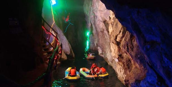 云华蝙蝠洞位于河南省西峡县五里桥乡白河村境内,距县城6公里,距312国道2公里,距寺山国家森林公园5公里,距灌河游览区、橡胶坝5公里,距石门湖12公里。蝙蝠洞距南阳市126公里,距西安市384公里,距洛阳市150公里。云华蝙蝠洞属喀斯特岩溶地貌。因该洞内岩壁上布满云朵样花纹,似锦似缎,堂皇华丽,又因里面有无数蝙蝠栖息,故名“云华蝙蝠洞”。1999年5月五里桥乡党委、政府决定对云华蝙蝠洞进行保护性开发,同年9月1日动工,2001年5月1日对外开放。据专家考证,该洞形成于中生代白垩纪,距今有6500万年的历史。景区洞外森林茂密、鸟语花香,是一处集自然观赏、洞中探奇、生态览胜、消夏避暑为一体的旅游景点。溶洞内有地下廊道、水曲河、洞厅暗河、钟乳石等。溶洞蜿蜒曲折,走势时高时低,洞身时宽时窄,高时达60多米,低时需弯腰低头才能通过,宽时可达80米,窄时不足1米。洞中有洞,洞洞相连,洞上洞,洞下洞,洞洞精巧。洞中钟乳石有的若神龟探海、有的似海狗观天、有的似雄狮倒挂、有的像玉女献花,姿态万千,奇妙无比。岩层在地质年代褶皱弯曲,加上水的冲刷溶蚀,形成众多线条明快,纹理清晰的天然岩画,似龙、如虾、象龟,似人似神,似兽似禽,形态各异,进洞观赏,犹如步入神圣的艺术殿堂。全洞共9个景区,32个景点。