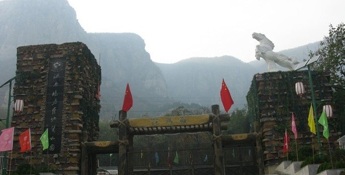 河南跑马岭地质公园位于河南省历史文化名城卫辉市狮豹头,总面积一万两千余亩,具有优越的自然景观与丰富的人文景观。园区总体分为三部分:一为山顶的跑马岭大草原,辽阔无际,一片“天苍苍,野茫茫, 风吹草低见牛羊”的北国风光。二为山体的生态园,依山靠水,植物茂盛,有着多种野生动物,保持着良好的自然生态,一派生机。三是山脚下的白龙湖,碧波荡漾,水清鱼肥,水面达六平方公里,与雄山峻岭相映成趣。整个园区特点是:景以石为奇,有着雄险的石壁悬崖、惟妙惟肖的石景; 游以休闲为乐,可以赏青山绿水,住石屋窑洞,吃农家餐,品山泉水。参与性节目有荡秋千、沿钢丝、走吊桥、骑马、垂钓、荡舟、射箭、狩猎、采野果、观斗鸡、喂鸽……现主要景点有老君爷、万亩草原、白龙湖、仙人观鱼、洪武饮马池、天将峰、狮豹峡、龙盘石、京娘洞、仙女洞、林荫广场、百兽岩、揽胜阁、牛梭树、休闲洞等。