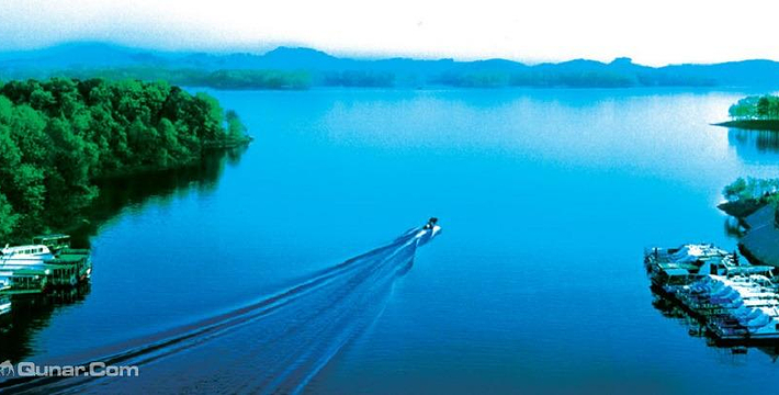 南湾湖,又称南湖,位于河南省信阳市,距离信阳市西南5公里,素有“豫南明珠””的美称。景区由南湾湖和南湾国家森林公园组成,森林面积2180公顷,水域面积80平方公里,是杭州西湖的12倍,湖内水天相接,烟波浩淼;岛上绿树成林,苍翠欲滴,鸟岛、猴岛、消夏岛等61座岛屿错落分布。南湾湖水域面积75平方公里,烟波浩淼,洲岛错落,湖中茶岛、鸟岛、猴岛等61座岛屿大小不一,形态各异,碧珠洒盘、美不胜收,处处见鸟影,时时闻鸟鸣,以每年十万只鹭鸟繁衍栖身而闻名,湖中盛产南湾鱼,肉质细嫩,鲜美可口,是省内外知名的健康绿色食品。信阳毛尖茶驰名中外,南湾湖上游的五云茶山是信阳毛尖茶的主产地,现在形成产茶、采茶、制茶、销茶、茶艺表演于一体的茶文化链。