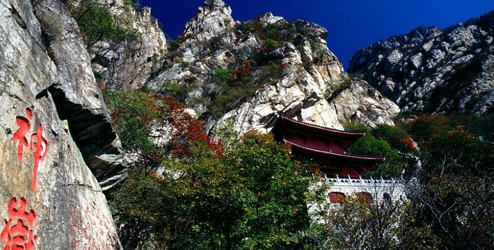 中岳嵩山位于河南省西部,古时曾称外方嵩高,五代后称中岳嵩山。由太室山与少室山组成1512米;面积450平方公里,东西绵延60多公里;东依省会郑州,西临古都洛阳,南依颍水,北邻黄河。是我国文明的发源地,也是我国名胜风景区,入选世界地质公园、世界文化遗产名录。中岳嵩山属伏牛山系,主脉在登封境内,连绵六十多公里,嵩山中部以少林河为界,中为峻极峰,东为太室山,西为少室山,嵩山是其总名。古人以太室为嵩山主山,太室少有奇峰,东西起伏如眠龙,故有“华山如立,中岳如卧”的说法。两座高山层峦叠嶂,绵延起伏于黄河南岸。历代的帝王将相、墨客骚人、僧道隐士,根据这些山峰的形态,给这些美丽的山峰命名,遂有七十二峰之说。中岳大殿又叫峻极殿。面阔九间,进深五间,重歇山式殿顶,黄琉璃瓦顶,七踩和九踩斗拱,透花棂子门窗,金碧辉煌,素有“台阁连云,甍瓦映日”之称。中岳大殿内吊游龙天花板,下铺磨光青石地面。中岳大殿内正座为五米高的中岳大帝塑像,即殷朝“闻骋”,经历代帝王加封为“祟圣大帝天中王”。塑像两边有使臣侍者和镇殿将军方弼、方相塑像,高七米,执斧荷钺,威风凛凛。明崇祯十四年(公元1641年)大殿毁于火。清顺治十年(公元1653年)重建。中岳庙是道教胜地,历代名道士曾在此著书讲经。位于太室山东麓的黄盖峰下,始建于秦,原名“太室祠”。汉武帝时增修“太室祠”,北魏时改名为中岳庙。庙内有330株古柏、一百通石碑,及