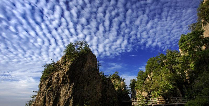 河南老君山位于河南省洛阳市栾川县城东3公里处,是秦岭余脉八百里伏牛山的主峰,海拔2200米,原名景室山。后因西周朝“守藏室史”李耳到此归隐修炼,并被道教尊为太上老君而被唐太宗易名为“老君山”,沿袭至今。老君山风景区是伏牛山世界地质公园、国家AAAAA级旅游景区。老君山古号景室山,因道家始祖老子归隐修炼而得名,是八百里伏牛山主峰,海拔2217米。目前景区已开发建成八大景区,138个景点,是旅游观光、祭拜朝圣、休闲度假、科考探险、动植物观赏的理想目的地。山顶太清观始建于北魏,历代重修,唐代尉迟敬德曾监工重修,铁椽、铁瓦、金碧辉煌,千百年来,一直是豫、陕、皖、鄂等地众香客朝拜的中原道教圣地。近年来,东南沿海香客也慕名前来,仅台湾高雄九龙八风进香团每批朝山者就达百人之众。老君山景区现有农家宾馆25家,床位800张,并有二星级宾馆老君山大酒店与景区配套,可接约130人住宿,宾馆餐厅雅间15个,大厅一个,可同时容纳300人就餐。