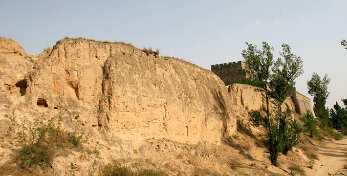 发现于1987年,共两处。一处南起巴拉素镇转水庙村,北至补浪河乡向阳村附近,全长25公里,间断延续30米,高均1米左右,有多处夯土层,但夯印不明显。另一处东起巴拉素乔家峁南,西至红石桥乡井界村,全长14公里,残墙间断绵延,夯土层厚15―20厘米,尚有残存墩宽9米,高5米。沿此两段古长城遗址,发现有大量的白灰陶、夹砂灰陶、黑陶和少量红陶残片,其上纹饰多为蓝纹、粗细绳波、方格纹和堆积纹等。同时,还发现战国时常用的陶鬲单足及其残片、石器残件和四棱形铁箭头等物。经考定,这里为战国至秦汉时长城遗址。据《汉书·匈奴传》上载:“十有余年而蒙恬死,诸侯叛秦,中国扰乱,诸秦所徙谪边者皆复去。于是匈奴得宽,复稍渡河南与中国界放故塞。”所谓“故塞”,即秦昭襄王时所筑、今榆林市境内发现的秦长城。