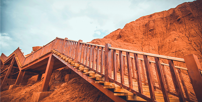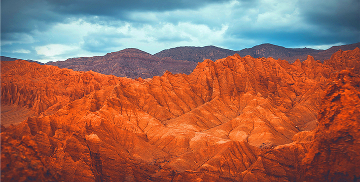 云谷景区位于吐鲁番市北侧20公里,天山南侧,距离吐鲁番火车北站及机场约15公里,迎宾大道至景区的旅游专线已建设完成,交通十分便利。景区内赤壁丹崖,刀锋林立,千沟万壑,造型奇特,大自然的鬼斧神工,造就了火云谷恢弘壮阔的丹霞世界,也是火洲吐鲁番既具代表性又相对独特的景观。景区内设A,B两条线路,分别为旅游大巴,及越野车队合理设计游览线路。同时每条线路既有车行道又有徒步道,满足各类游客的不同需求,游客可自行选择体验方式,更好的欣赏自然美景。为方便游客更好的参观游览,景区还设置了通天梯、观景平台、小驿等,为游客提供游览观景、休憩拍照的平台。景区在开发建设上致力于保护自然景观的原始性,景区内,火云洞、十八罗汉、火烧莲台、一线天等景点皆为自然形成的基础上,以神话故事为依托,融入西游主题元素,让游客深入了解火云谷的自然及文化历史,增加游览趣味性。