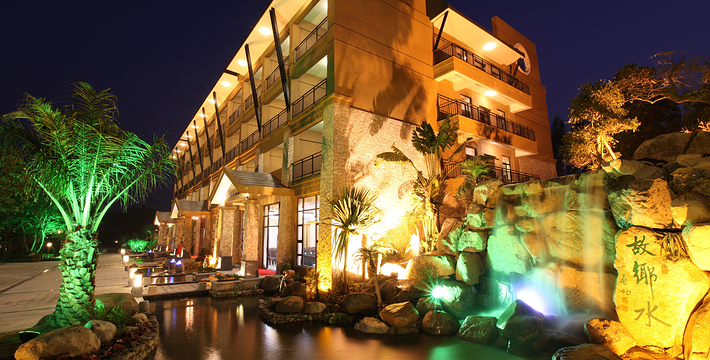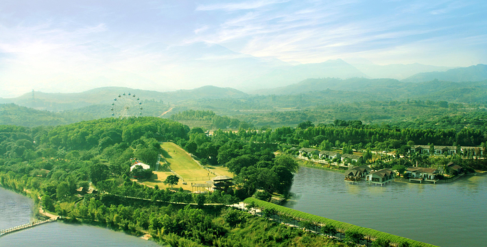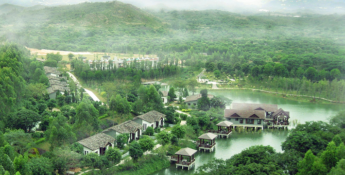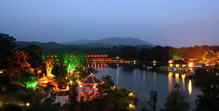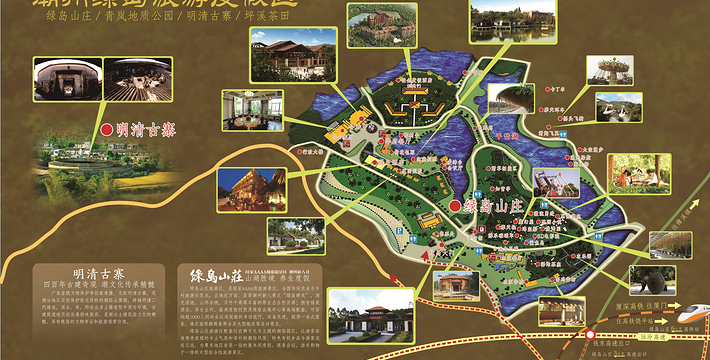 位于饶平县钱东镇。是一处集观光、参与、度假等于一体的综合性休闲度假胜地。山庄原是一片由上世纪六、七十年代“革命知青”营造的果林地,因林果苍翠茂密, 山庄以成片的果园,自然的山川湖泊为依托,各景观景点设置采取静动结合,古今结合和日常生活与现代科学结合的手法,达到融观光、参与于一体。园艺小品、小筑安排细腻,四季花草、芳香植物和赏花、赏叶花木搭配灵活自如,达到整体源于自然而胜于自然。山庄紧紧围绕“农家乐”和“绿色环保”这一主题和功能定位。每逢节日,当地民间艺术团体为游客表演潮剧、潮乐、潮曲等节目,为游客增添节日气氛。主要特产有绿岛“黑猪肉”、窑鸡、药鸭、鸽王、野菜以及各类果酒。绿岛旅游山庄建成区总面积1.5平方公里,有大小景观景点数十个,其中主要景点有:千竹湖、昔日农家、明清古寨、农家宴。