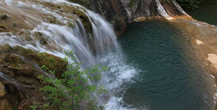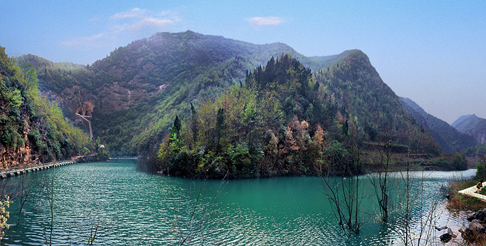——丹江口水库西岸的深山密林中。它因中州四大名寺、国家重点文物保护单位香严寺的始祖慧忠国师在此坐禅而得名。博大精深的佛教文化底蕴,风景如画的自然山水美景,南水北调中线工程水源地的地利条件,使得坐禅谷景区成为世人关注的焦点和丹江风景名胜区的璀璨明珠。 山险石奇百花开 坐禅谷东依象鼻岭,西依青龙山,两山对峙、山险石奇、洞幽林茂、山花烂漫,令人陶醉,10米。整个峡谷绵延20余公里。旧时,因峡谷幽深可怕,被人们称为“鬼谷”。春秋战国时期,著名宗师王禅隐居于此,人称“鬼谷子王禅”。千佛崖是河南罕见的大型钟乳石群,崖壁上有无数尊形似神仙的钟乳石。绝壁飞龙是坐禅谷又一大奇观,好像是一条火龙,奔腾在坐禅谷的青山秀水之中。通天洞因唐宣宗李忱两次从洞中逃脱追杀而御赐成名,从山腰一直通到山顶,绵延数百米,实乃通天之洞。孙膑洞则是鬼谷子的徒弟孙膑著书立说的藏身之洞。由于景区内森林覆盖率高达85%,使得这里的空气清新、湿润,空气中氧离子含量每立方厘米超过10万个,相当于中等城市的50倍,是一个天然大氧吧。