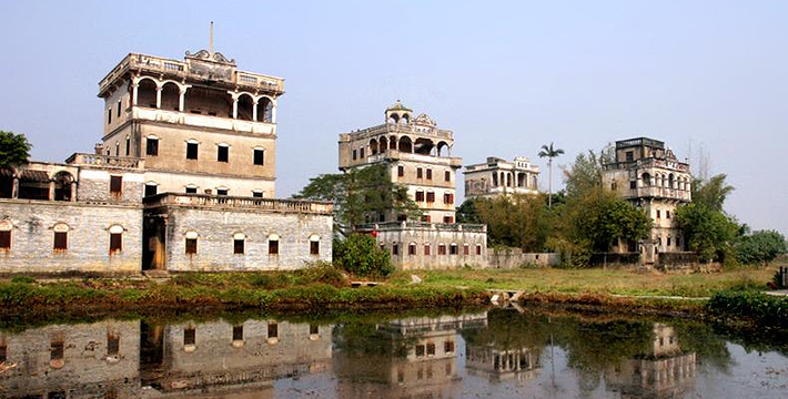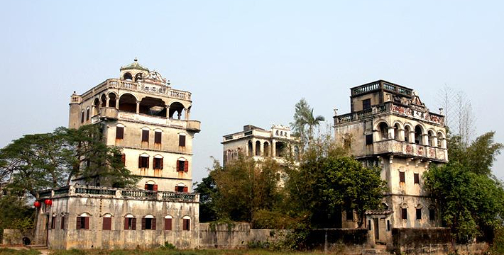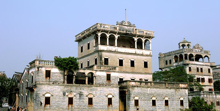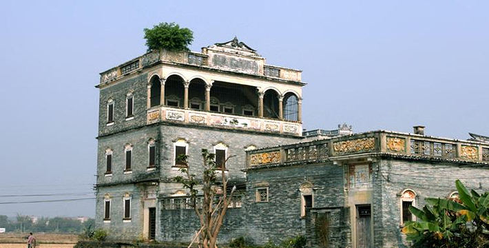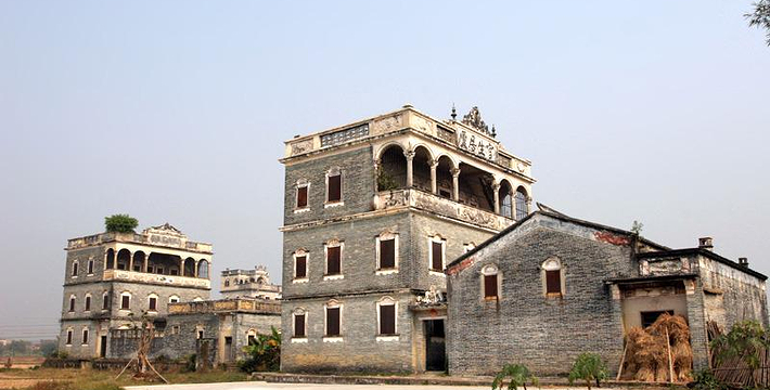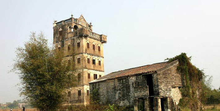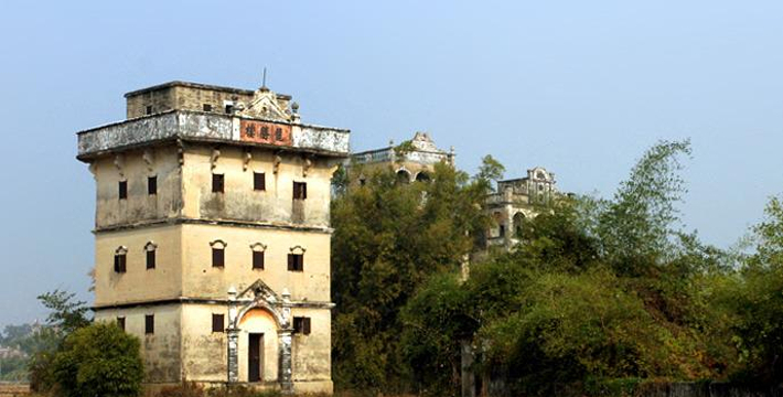 自力村隶属开平市塘口镇,是由安和里(俗称犁头咀)、合安里(俗称新村)和永安里(俗称黄泥岭)三条方姓自然村组成。清道光十七年(1837年)犁头咀首先立村。该村民居格局与周围自然环境协调一致,村落布局为零星状。立村之初,该村只有两间民居,周围均是农田,后购田者渐多,又陆续兴建了一些民居。鸦片战争后,人民生活困苦,加上资本主义国家发展生产需要大批的劳力,来华招募劳工,开邑地区很多人离乡别井,到国外谋生,自力村人也是这个时期开始旅居海外。以后一个带一个,旅外者众。他们赚了钱,便纷纷回来购田置业,尔后又返回国外,如此循环往复。20世纪20年代间,因土匪猖獗、洪涝频繁等原因,一些华侨、港澳同胞便拿出部分积蓄兴建碉楼和居庐。这些碉楼和居庐一般以始建人的名字或其意愿而命名。碉楼的楼身高大,多为四五层,其中标准层二至三层。墙体的结构,有钢筋混凝土的,也有混凝土包青砖的,门、窗皆为较厚铁板所造。建筑材料除青砖是楼冈产的外,铁枝、铁板、水泥等均是从外国进口的。碉楼的上部结构有四面悬挑、四角悬挑、正面悬挑、后面悬挑。建筑风格方面,很多带有外国的建筑特色,有柱廊式、平台式、城堡式的,也有混合式的。为了防御土匪劫掠,碉楼一般都设有枪眼,先是配置鹅卵石、碱水、水枪等工具,后又有华侨从外国购回枪械。配置水枪的目的是,因水枪里装有碱水,当土匪靠近楼体时喷射匪徒的眼睛,使其丧失战斗力,知难而退。为了增强自卫能力,很多妇女都学会开枪射击。这些碉楼,有的是根据建楼者从外国带回的图纸所建,有些则没有图纸,只是出于楼主的心裁。楼的基础惯用三星锤打入松桩。打好桩后,为不受天气的影响,方便施工,一般都搭一个又高又大的葵篷,将整个工地盖着。建楼“泥水工”二三十人,以当地人居多。“泥水”师傅一天的工钱约六毫子(三个双毫),杂工为四毫子(两个双毫)。