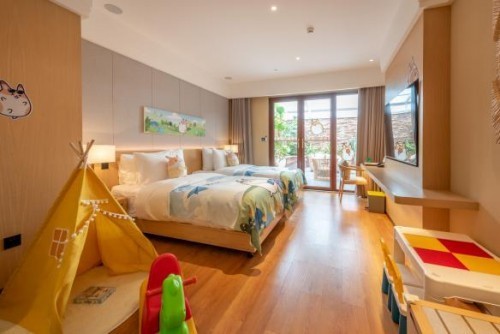 满屋世界旗下亲子成长IP“满纷一家”自2022年5月起,正式与国家4A级旅游景区龙凤山庄影视旅游区达成中长期战略合作。针对亲子成长需求,满纷一家IP在景区的植入联动、酒店亲子客房的应用上,推出一系列特色的主题产品服务,打造定制差异化的特色行程体验,更好满足逐年扩大亲子游市场的新需求。