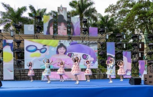 “缤FUN水乐园”是亲子游消暑的清凉项目,融合时下“电音概念”,现场青春演绎《满纷一家》动画同名主题曲舞蹈与观众亲密互动。