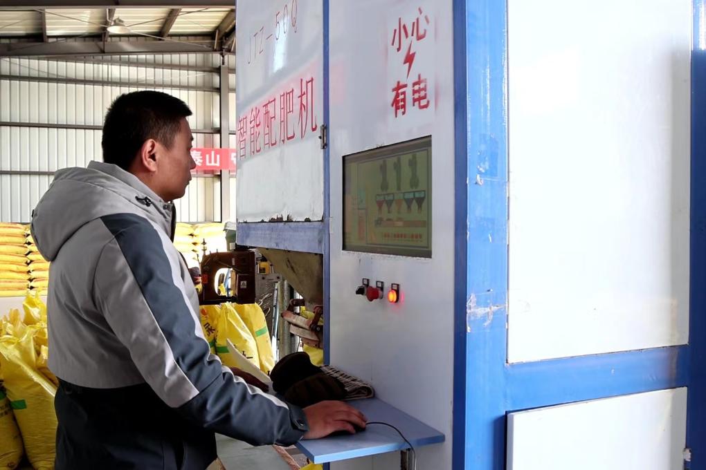 北大荒集团军川农场有限公司富川管理区配肥站里工人正在使用智能配肥机。(受访者供图)