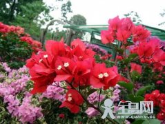 三角梅(Bougainvillea)又称簕杜鹃、叶子花、宝巾花、九重葛,隶属紫茉莉科。原产南美洲和中美洲,是我国深圳市、珠海市、厦门市、江门市、惠州市、梧州市、北海市、三亚市、台湾屏东市等的市花,也是赞比亚的国花。 三角梅的花朵一般为三朵花成三角形对称排列,故称三角梅。不过其主要观赏部位是由叶片进化而成的苞片,苞片3片为一组,纸质,色彩艳丽。当今众多的三角梅品种,多为三个原种即毛叶三角梅(B. spectabilis)、光叶三角梅(B. glabra)、秘鲁三角梅(B. peruviana)之间相互杂交而成。在几百个园艺种植杂交种中,以Bougainvillea Buttiana杂交种最为常见。 国内三角梅品种常以叶、枝和苞片特征和颜色进行命名。不同品种常按绿叶(黄叶、光叶、毛叶)和斑叶(外斑、内斑和杂斑:条斑、点斑、沙斑、网纹斑、麻斑,或暗斑、浸润斑,或金斑、银斑、粉斑),苞片(单瓣和重瓣)和苞片颜色(红、白、紫、粉等,或单色、双色,或有无其它颜色的浸润斑纹、