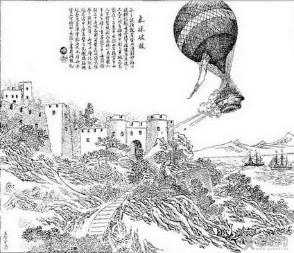 图为清末插画《演放气球》,作者称“中国人仅见天津武备学堂,于八月间制成气球安排养(氧)气、炭气满贮球中”,称热气球最大的好处是“最利行军妙用”。