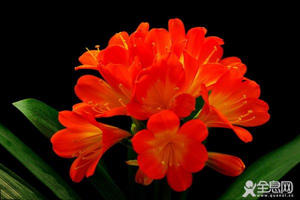 君子兰,株形端庄优美,叶片苍翠挺拔,花大色艳,果实红亮,叶花果并美,有一季观花、三季观果、四季观叶之称。其花期长达四五十天,而且能够早春开花,是重要的节庆花卉。君子兰是多年生常绿草本植物,叶花果俱佳,赏叶胜观花。