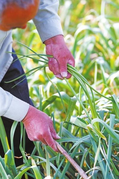 农户邀请市民来免费抽蒜薹