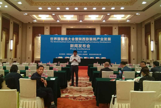 9月21日,北京人民大会堂新闻发布厅宾朋满座,一派喜庆祥和。在由陕西省农业厅、宝鸡市人民政府、西北农林科技大学主办,陕西省果业管理局、宝鸡市农业局承办的世界猕猴桃大会暨陕西猕猴桃产业发展新闻发布会上,陕西省农业厅文引学厅长宣布,大会将于10月13日至15日在陕西眉县国家级猕猴桃产业园区举办在这里隆重召开。