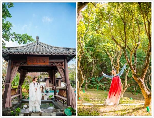 在御水古温泉,各种形制的男款、女款汉服一应俱全。接下来就可以去美美的拍照,在古风古色的御水古温泉任一处角落,都可以拍出完美的照片。一起抚琴共享悠闲时光。一袭汉服,一把油纸伞,呈现最美的意境。