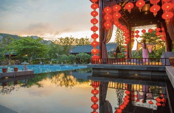 每当华灯初上,灯光勾勒出古戏楼的轮廓,楼前是一池碧水,只要一抬头就是蓝黑蓝黑的天空,星星越来越多。游客一边泡在天然温泉水中,一边可以欣赏倾情上演的荡气回肠的唐韵古装舞台剧《盛世》。